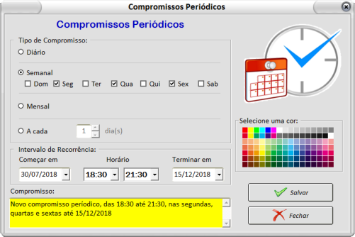 dia ou horário da sua agenda, pois