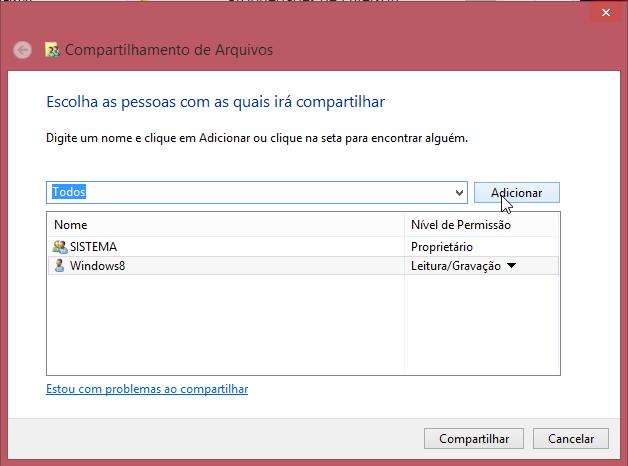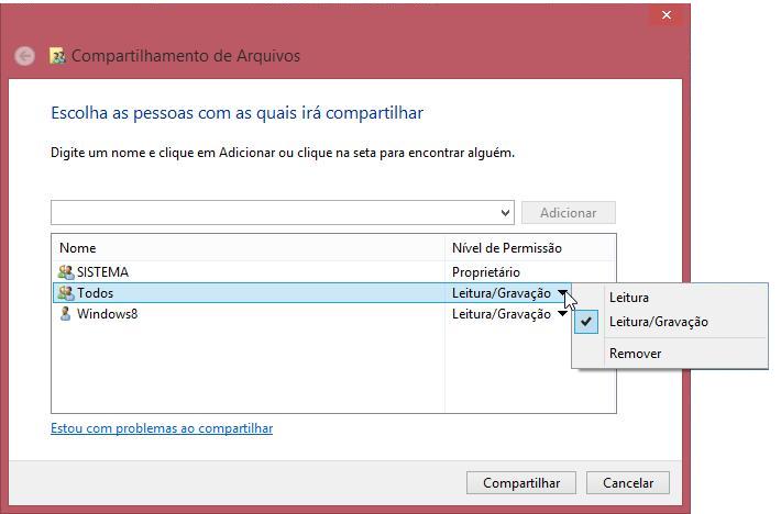 4) Observe que na lista abaixo, o nível de permissão de “Todos” deverá estar configurado como “Leitura/Gravação”, conforme a tela abaixo.