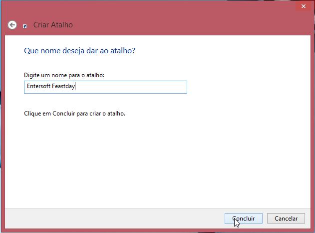 3) Clique no botão “Avançar”. 4) Na próxima tela, digite “Entersoft Feastday” no nome do atalho e clique no botão “Concluir”.