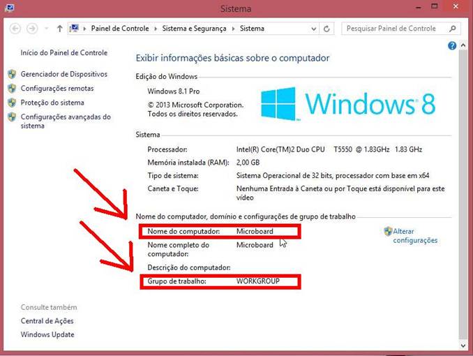 Instrução Nº 1 Anotando o “Nome do Computador” e o “Grupo de