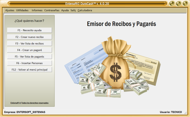 1) Comenzamos haciendo clic en el botón “F2 - Crear nuevo recibo”.