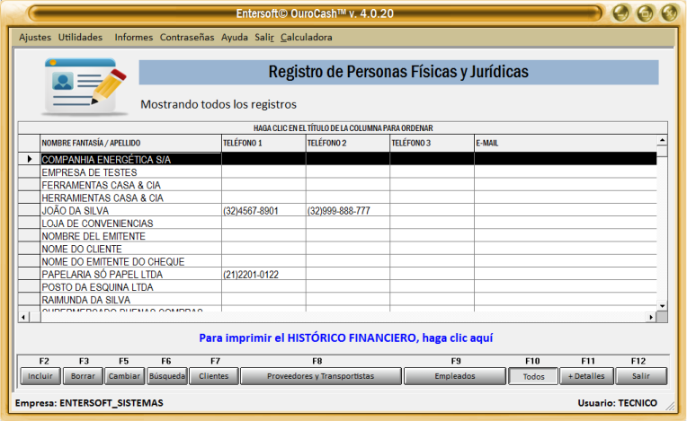 El Entersoft OuroCash ™ también crea automáticamente un histórico financiero para cada persona o