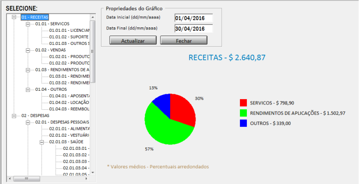 movimentações num determinado período, para cada categoria do seu plano de contas.